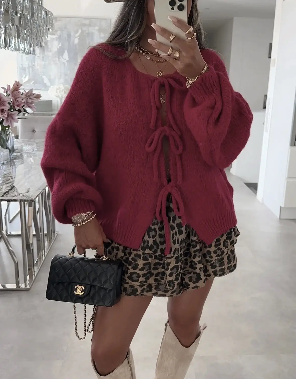 Wollweste mit Schnürsenkeln Bordeaux